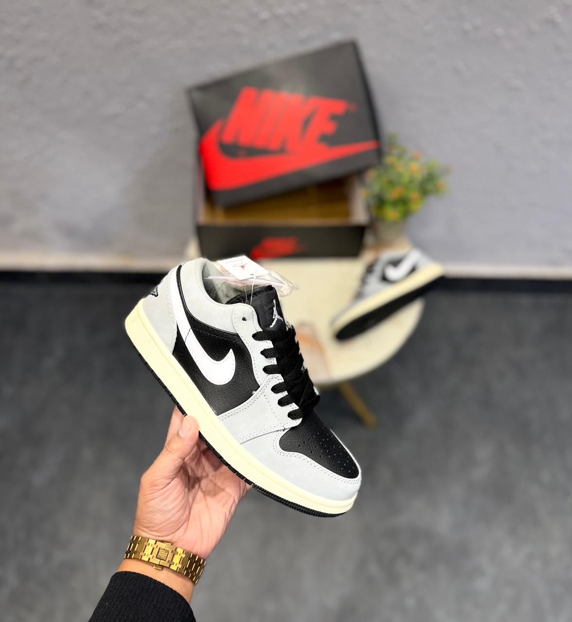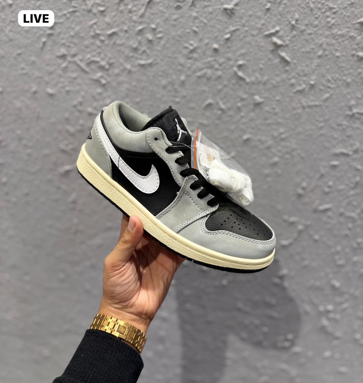 Step into iconic street style with the First Copy Air Jordans Retro 1 Low Reverse Shadow. Designed for sneaker lovers who crave premium aesthetics without the premium price, this pair delivers the legendary Jordan 1 silhouette in a sleek black, grey, and white colorway. Built with high-quality synthetic leather, precision stitching, and durable rubber outsole grip, these sneakers provide comfort, performance, and everyday versatility.