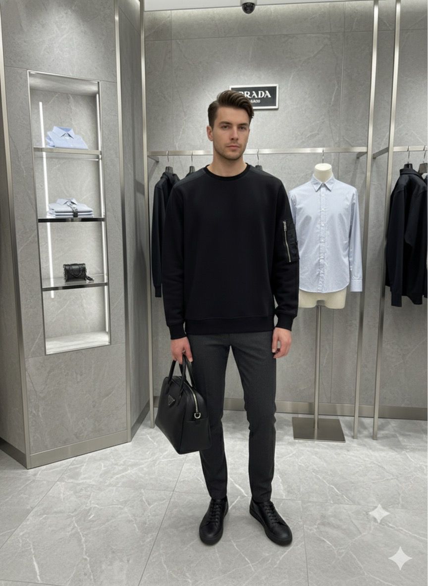 Crafted using imported GSM-rich cotton fleece, the sweatshirt feels ultra-soft on the skin while providing excellent warmth. The premium embroidery and high-standard finishing give it an authentic designer look that stands out effortlessly. Whether you wear it for casual outings, gym sessions, airport looks, or winter layering, this Prada first copy sweatshirt ensures you stay fashionable and confident.